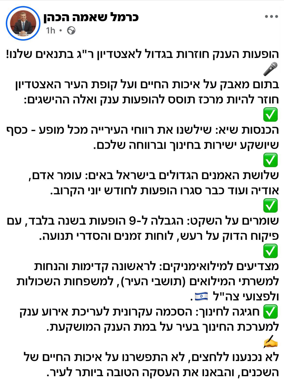כרמל שאמה הכהן, צילום: צילום מסך מפייסבוק