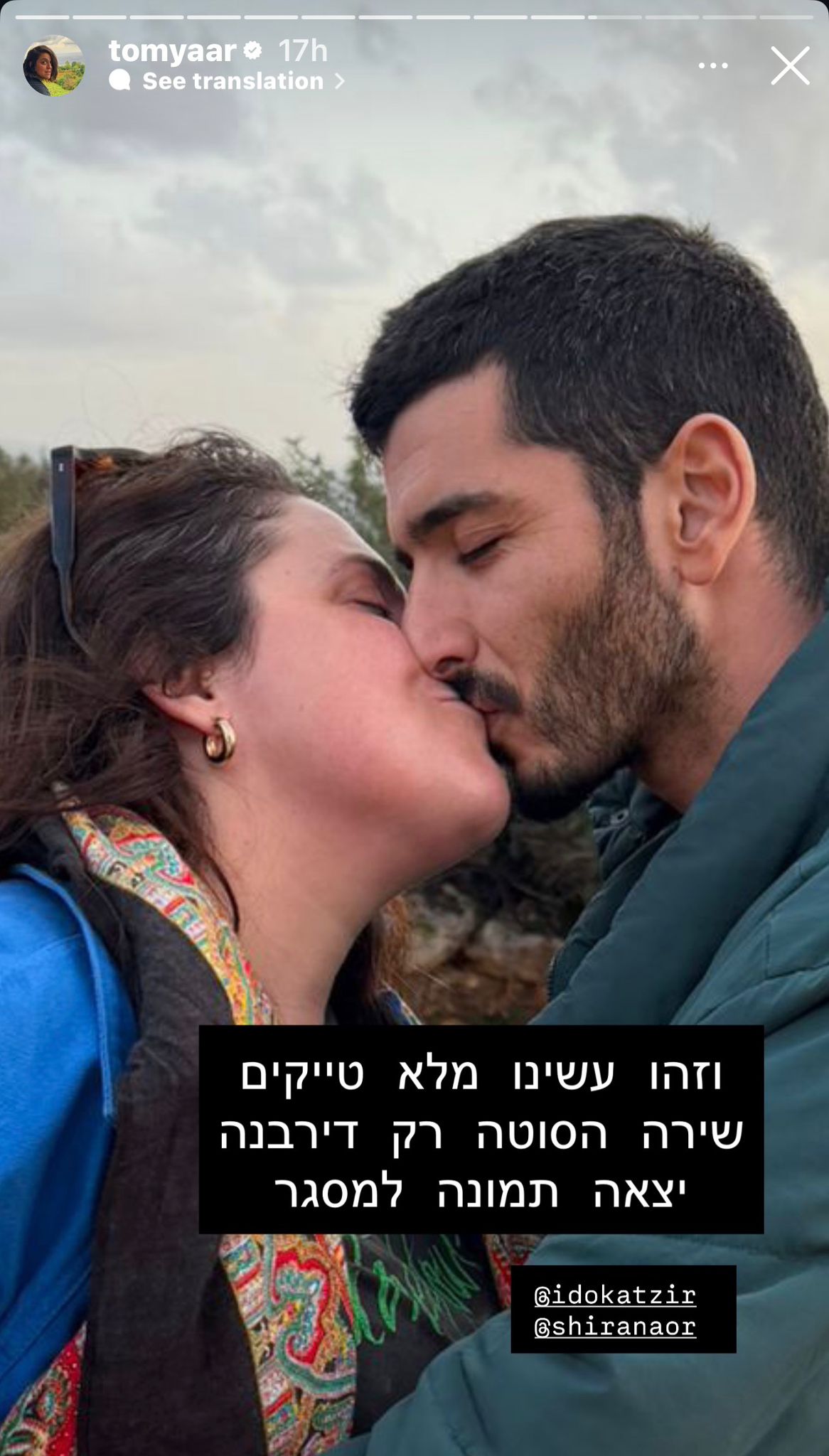 התיעוד צולם במהלך חופשה משותפת של שני זוגות מוכרים: תום יער ובעלה ירון סיון, והשחקנית שירה נאור עם בן זוגה עידו קציר. בסטורי שעלה נראית יער ברגע אינטימי עם קציר שהשניים מתנשקים מול בני הזוג שלהם כפי ששיתפה יער.