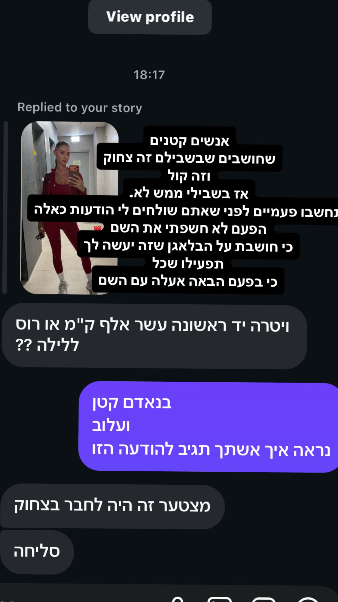 תגובה שכתב לרוסלנה אחד העוקבים באינסטגרם הצליחה לעצבן אותה במיוחד. היא חשפה את ההתכתבות בסטורי עם אזהרה ברורה לעתיד
