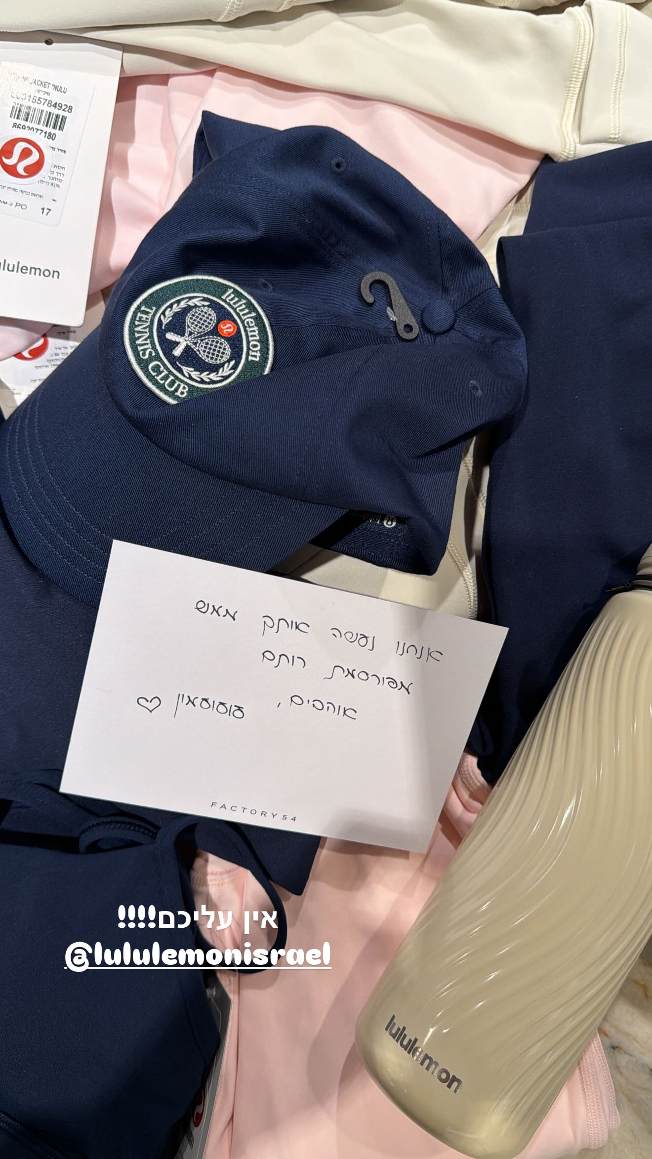 בסטורי שפרסמה סלע צילמה את הפריטים שקיבלה מלולולמון ואת המכתב שנשלח אליה: "אנחנו נעשה אותך ממש מפורסמת רותם. אוהבים, לולולמן".