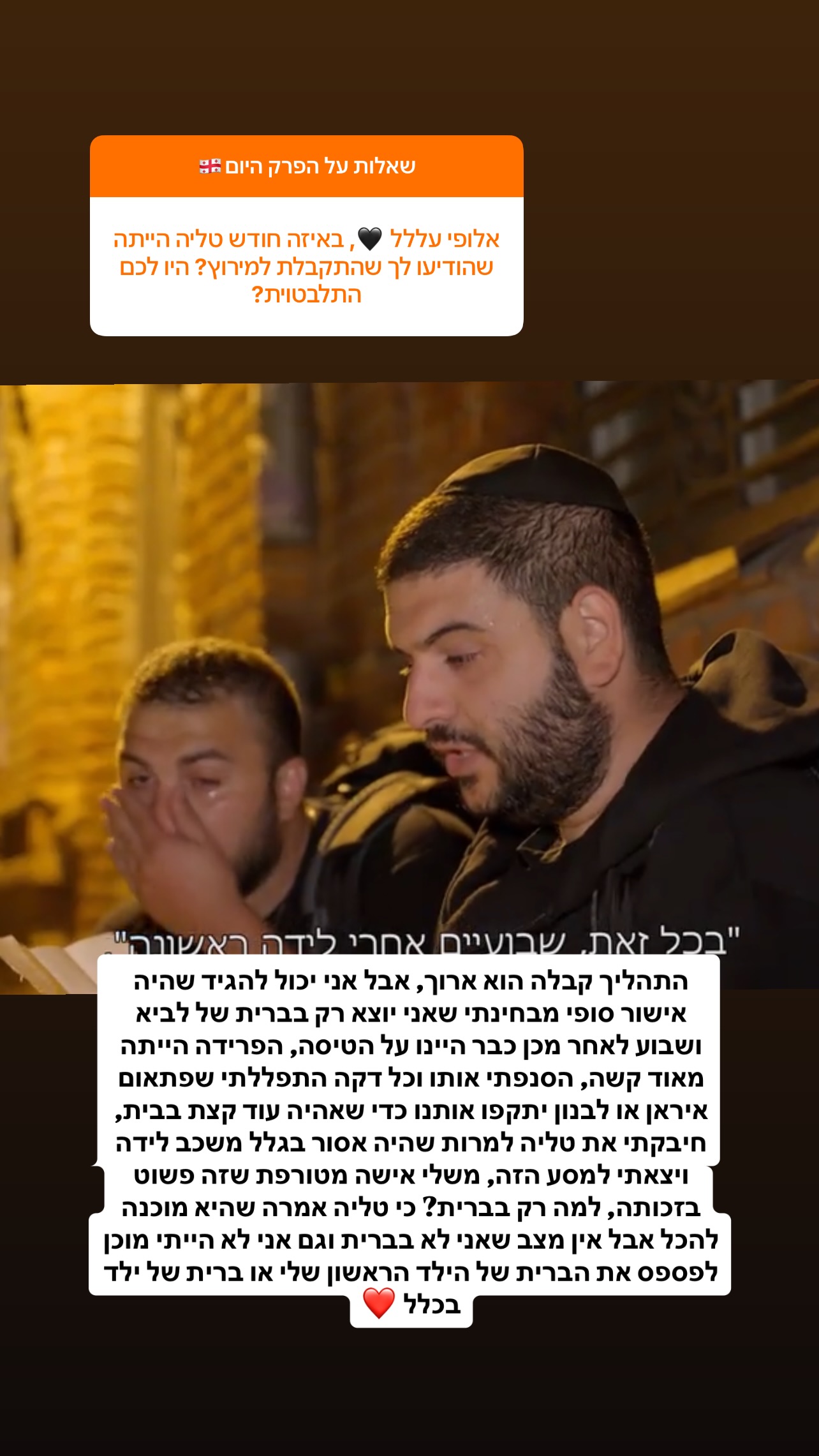 "התהליך קבלה הוא ארוך, אבל אני יכול להגיד שהיה אישור סופי מבחינתי שאני יוצא רק בברית של לביא ושבוע לאחר מכן כבר היינו על הטיסה", כתב יפרח.