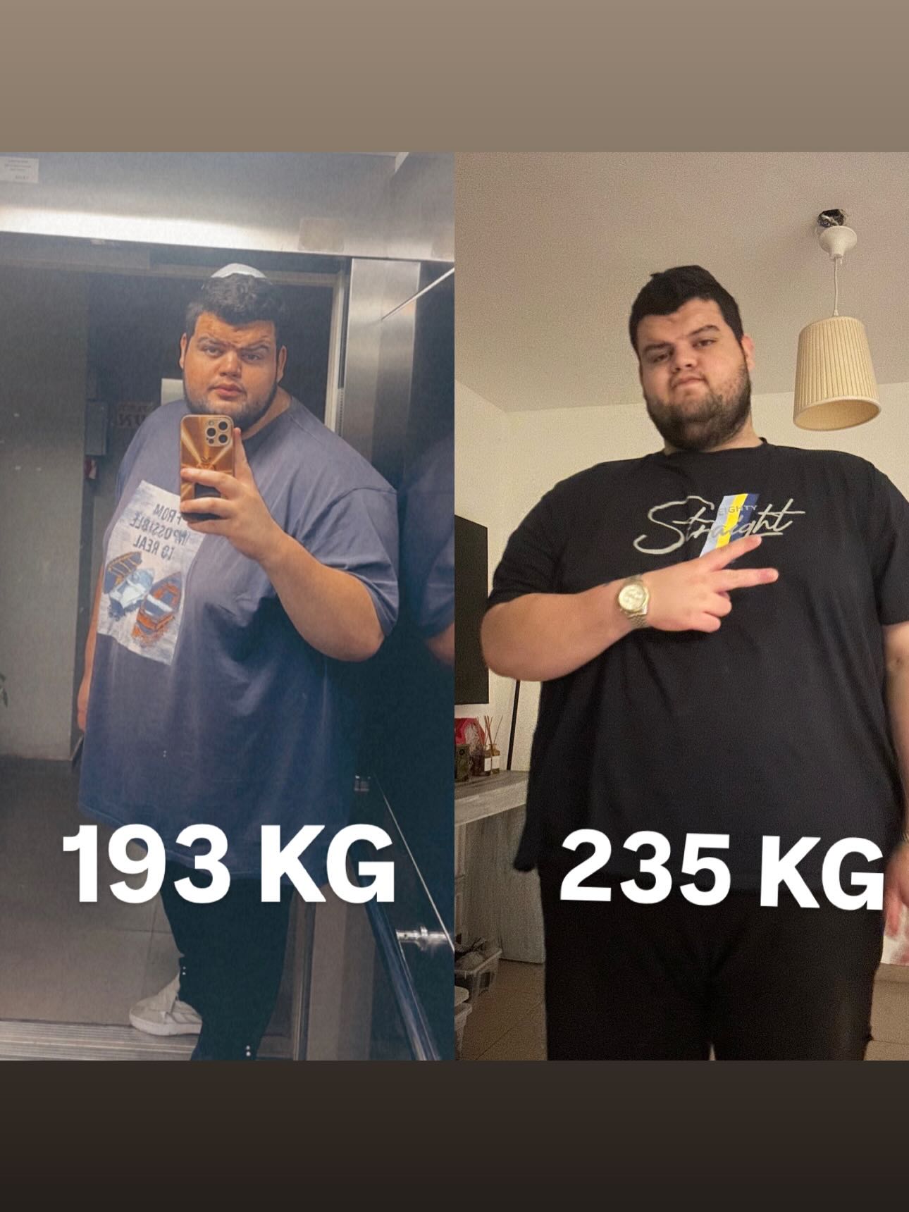 "אחרי חודש וחצי של תהליך הנה תוצאה (לא סופית עדיין) חייב לומר ששנים התביישתי להגיד את המשקל שלי אבל 235 זה המשקל שיא שלי ובריא זה לא! , אבל כשהתחלתי את התהליך שלי שקלתי באזור ה-220 219, אלה עדה", כתב בחשבון האינסטגרם שלו.