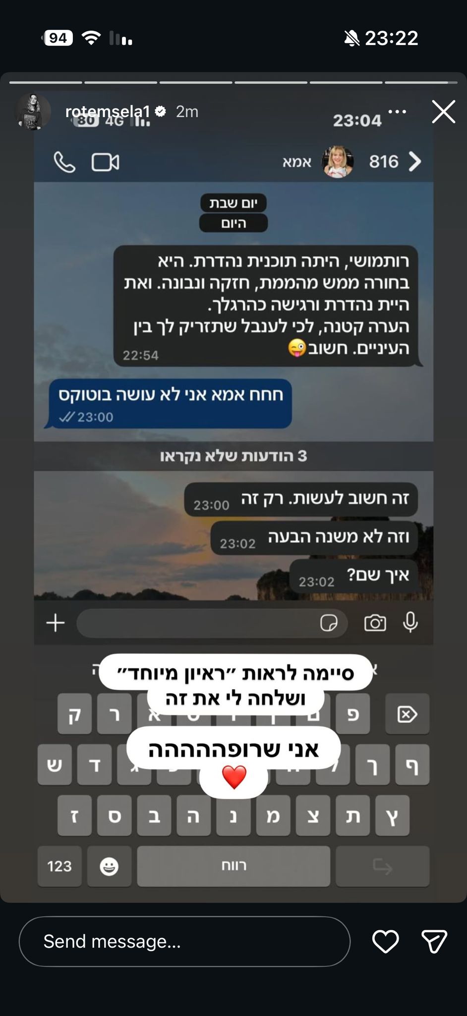 צילום מסך מתוך חשבון האינסטגרם של רותם סלע, rotemsela1@