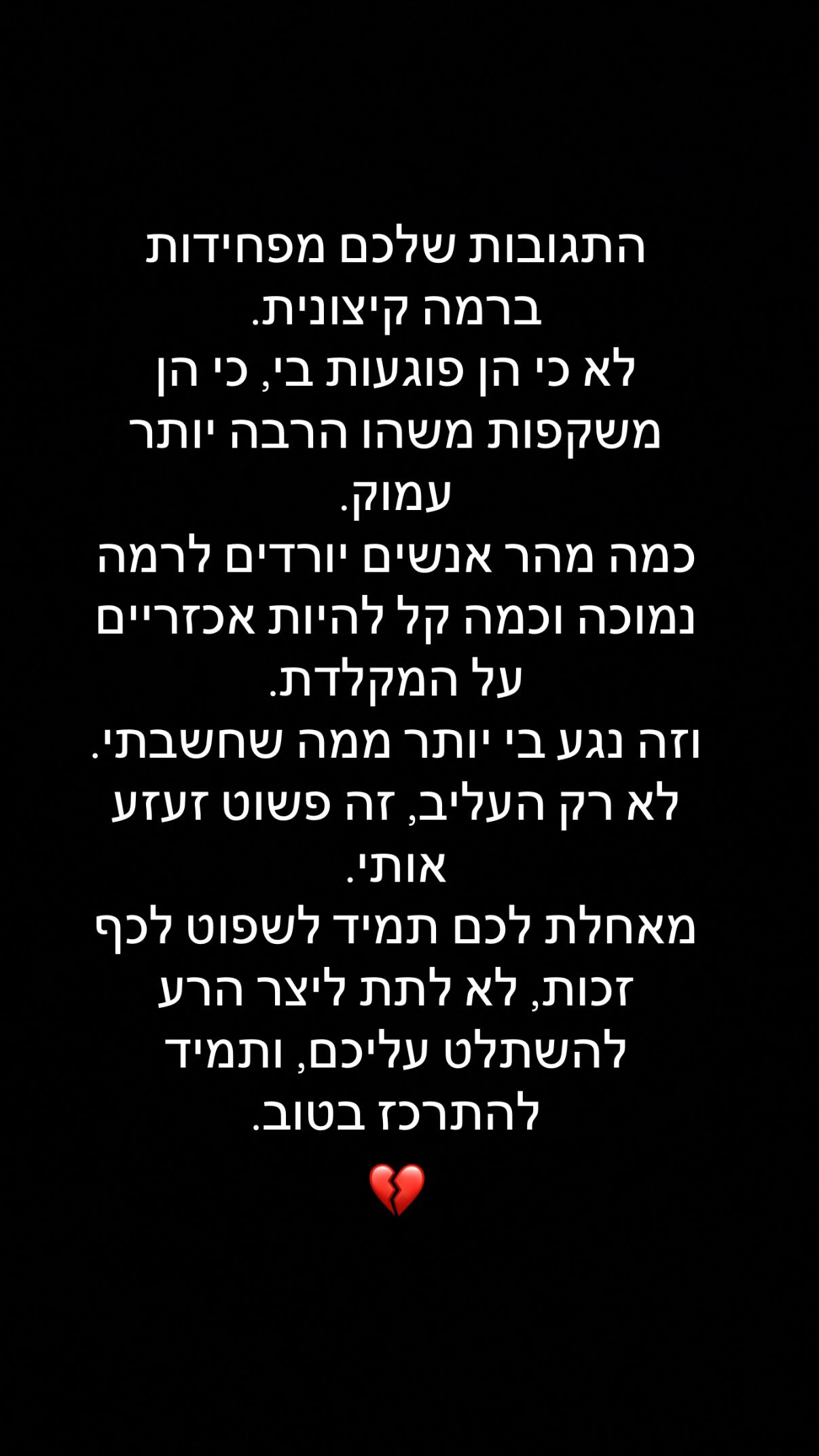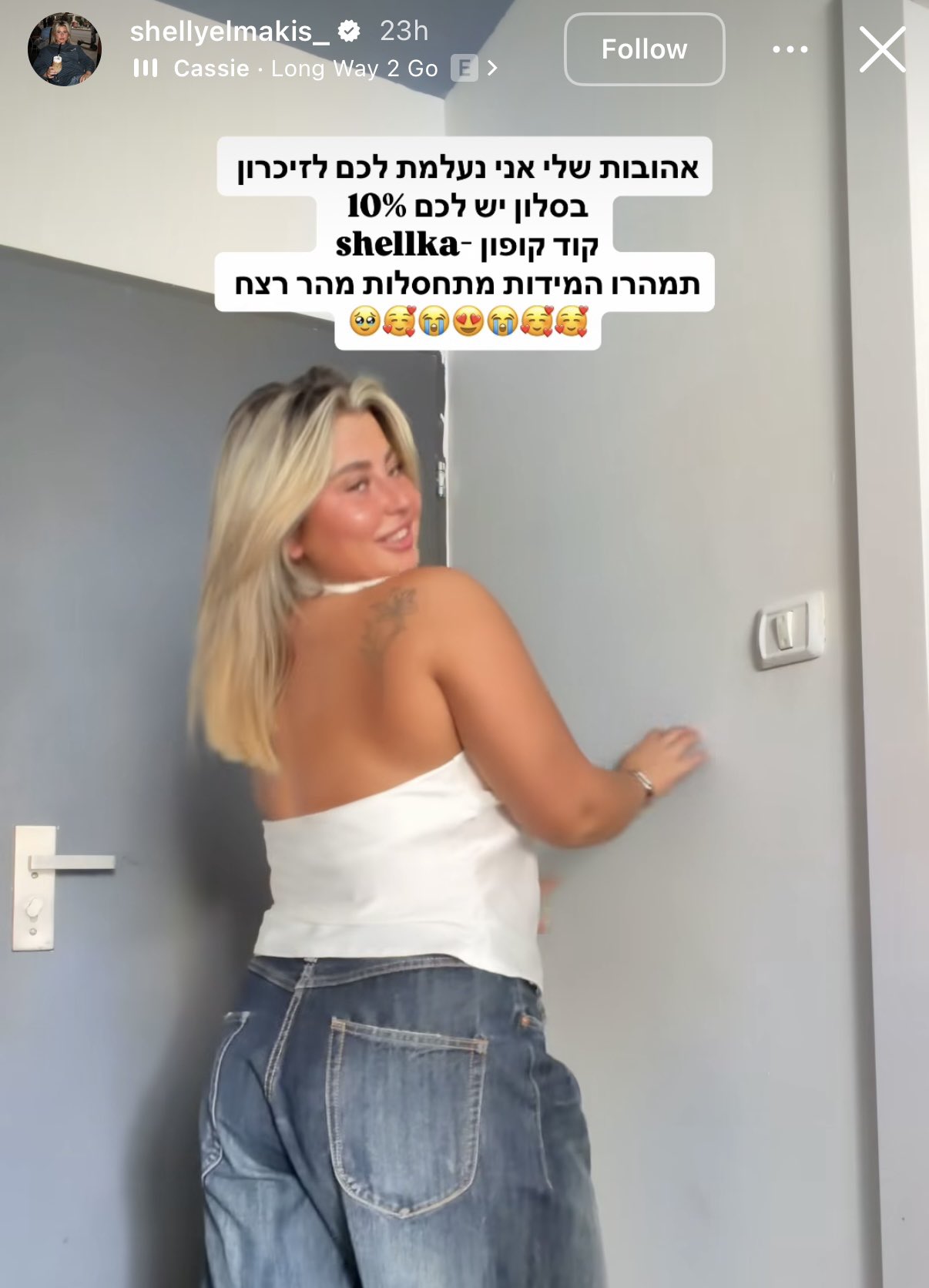 כוכבת "האח הגדול" החליטה "לנצל" את המצב וכתבה בסטורי: "אהובות שלי אני נעלמת לכם לזיכרון בסלון יש לכם 10% קוד קופון - shellka. תמהרו המידות מתחסלות מהר רצח".