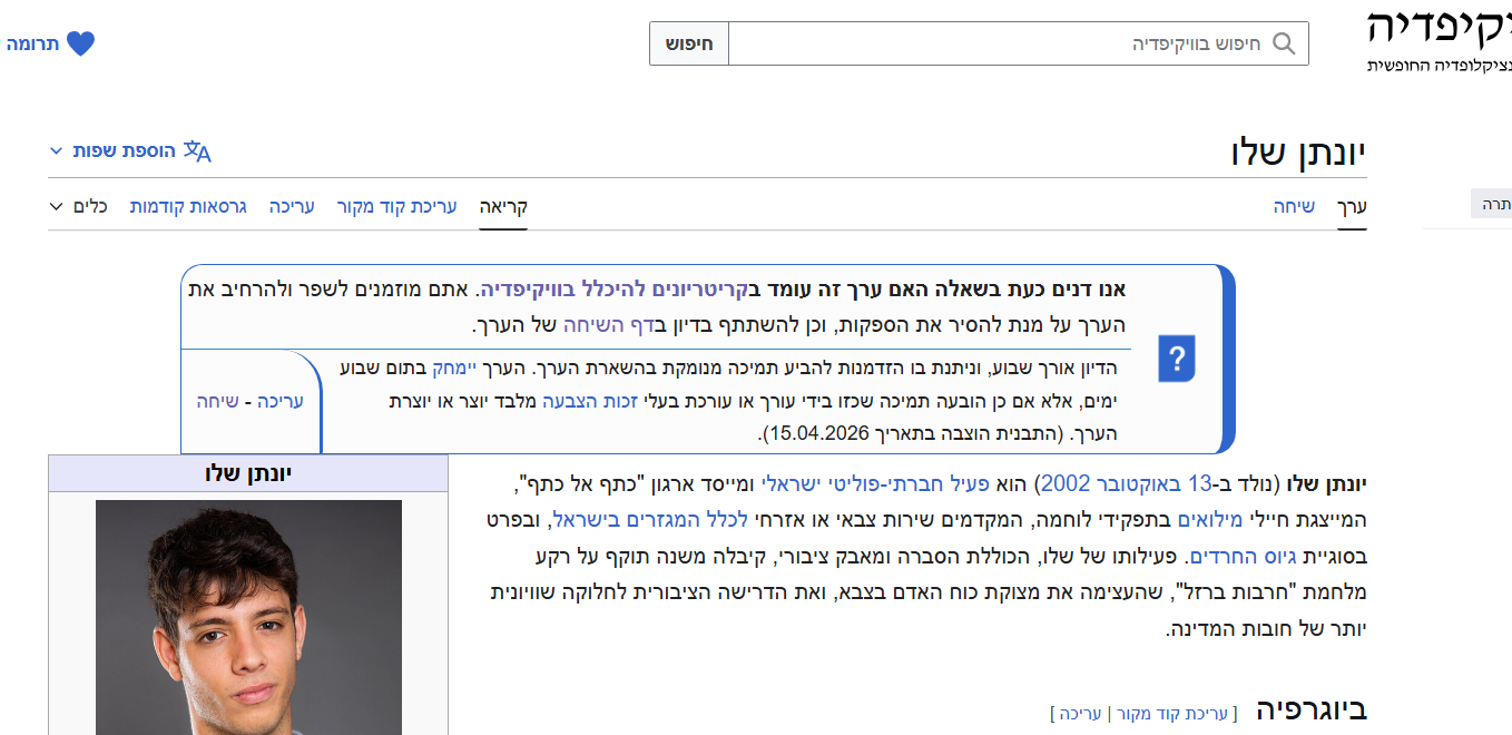 יונתן שלו על המוקד: הדיון הסוער והפוליטי בויקיפדיה למחיקת הערך