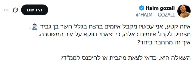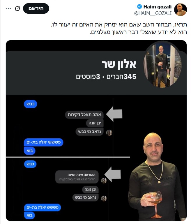 צילום מסך מתוך חשבון ה-X של חיים גוזלי, HAIM__GOZALI@