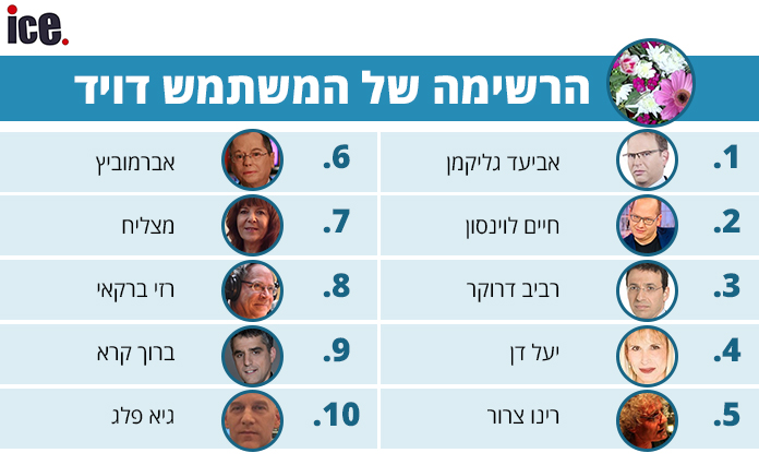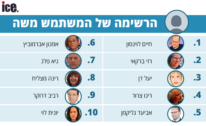 אחרי שהשתעשענו עם הרשימה הזאת ועם שמות רבים שחסרו למגיבים בטוויטר כמו בועז ביסמוט וינון מגל, הגיעו התגובות ולכל אחד מהם רשימה משלו.