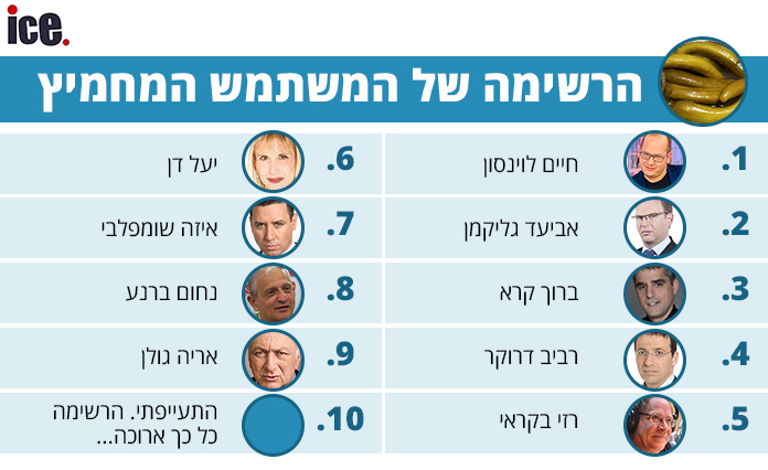 זה התחיל כשעשוע בטוויטר של העיתונאי חיים לוינסון והתגלגל לעשרות רשימות המדרגות את אלו שמפרגנים קצת יותר מדי למערכת המשפט, לשמאל, למנדלבליט ולעצמם. כל המועמדים, כל הרשימות וכל אלה שנשארו בחוץ