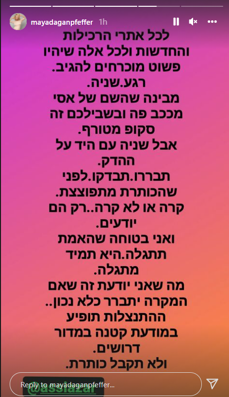 מיה דגן על פרשת עזר: "תבדקו לפני שהכותרת מתפוצצת"