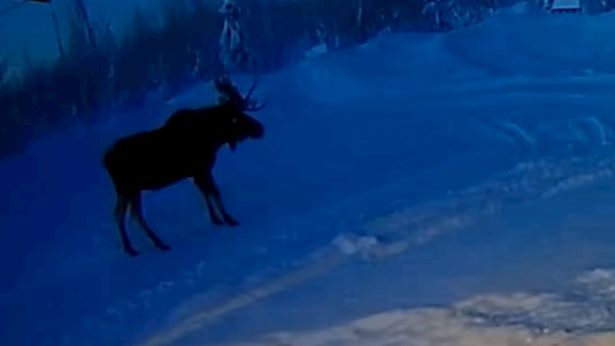 תיעוד נדיר של אייל משיל את קרניו באמצע החורף נתפס בעיניי מצלמת האבטחה של בית באלסקה