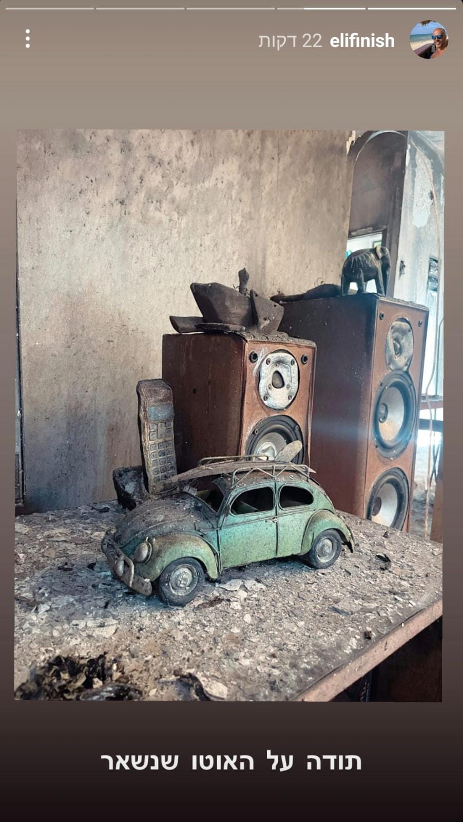 בסטורי באינסטגרם הגיב פיניש לתמיכה והסיוע שקיבל מחבריו ואוהדיו. "תודה לאל כולנו בריאים. תודה על המשפחה והחברים אני בר מזל. תודה על האנשים הטובים באמצע הדרך, תודה על מה שנשאר ותודה על מה שנשרף."