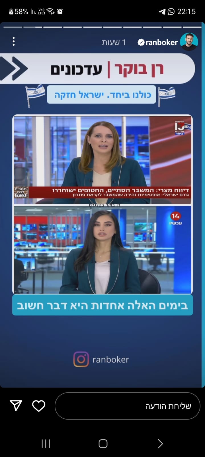 פדיחה גדולה נרשמה אמש (שבת) בזמן הקרב על הרייטינג של מהדורות החדשות המרכזיות, ערב שחרור 13 חטופים בפעימה השנייה, כאשר המגישות של חדשות 13 וערוץ 14 נקלעו ל'פיגוע אופנתי'.