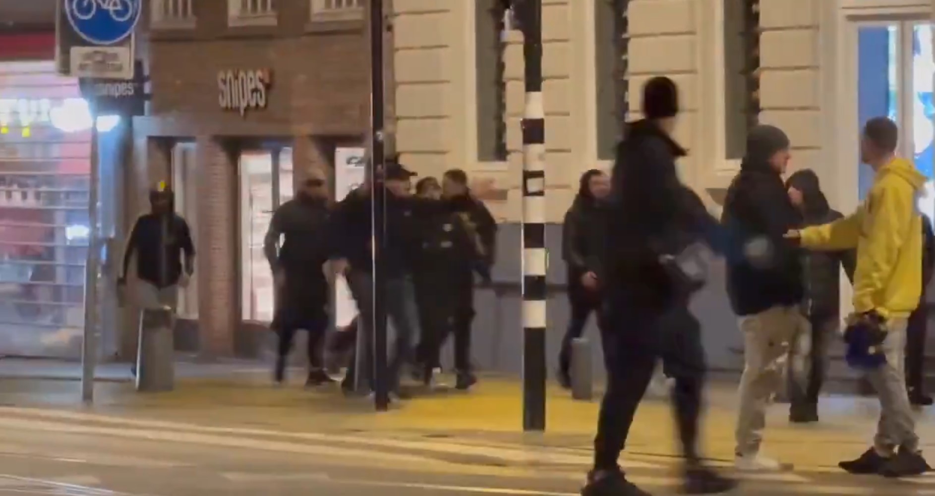 לינץ' נגד אוהדים ישראלים באמסטרדם (צילום מסך מתוך רשת X)