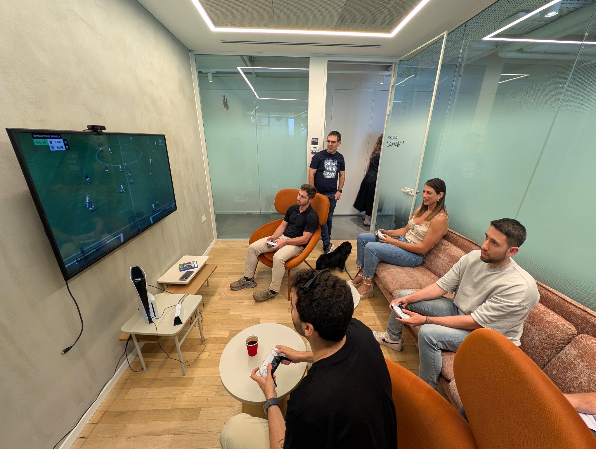 ספיר ברמן בסשן פיפ"א תחרותי עם עובדי ארניקס. קרדיט: ארניקס