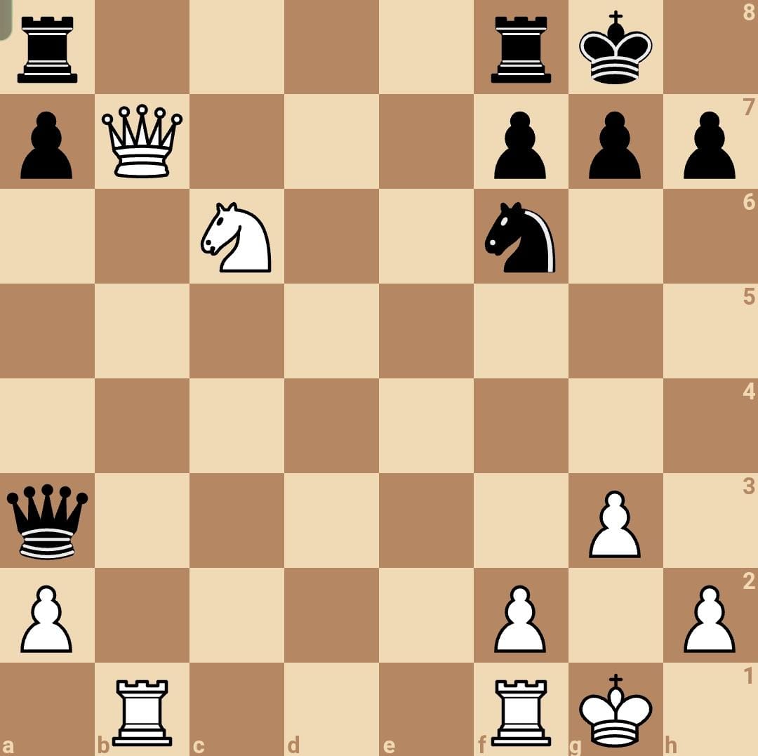 מהלך שלא רואים כל יום – הפרש הלבן מגיע לשורה ה‑8 ומנתק את הקשר בין הצריחים השחורים.