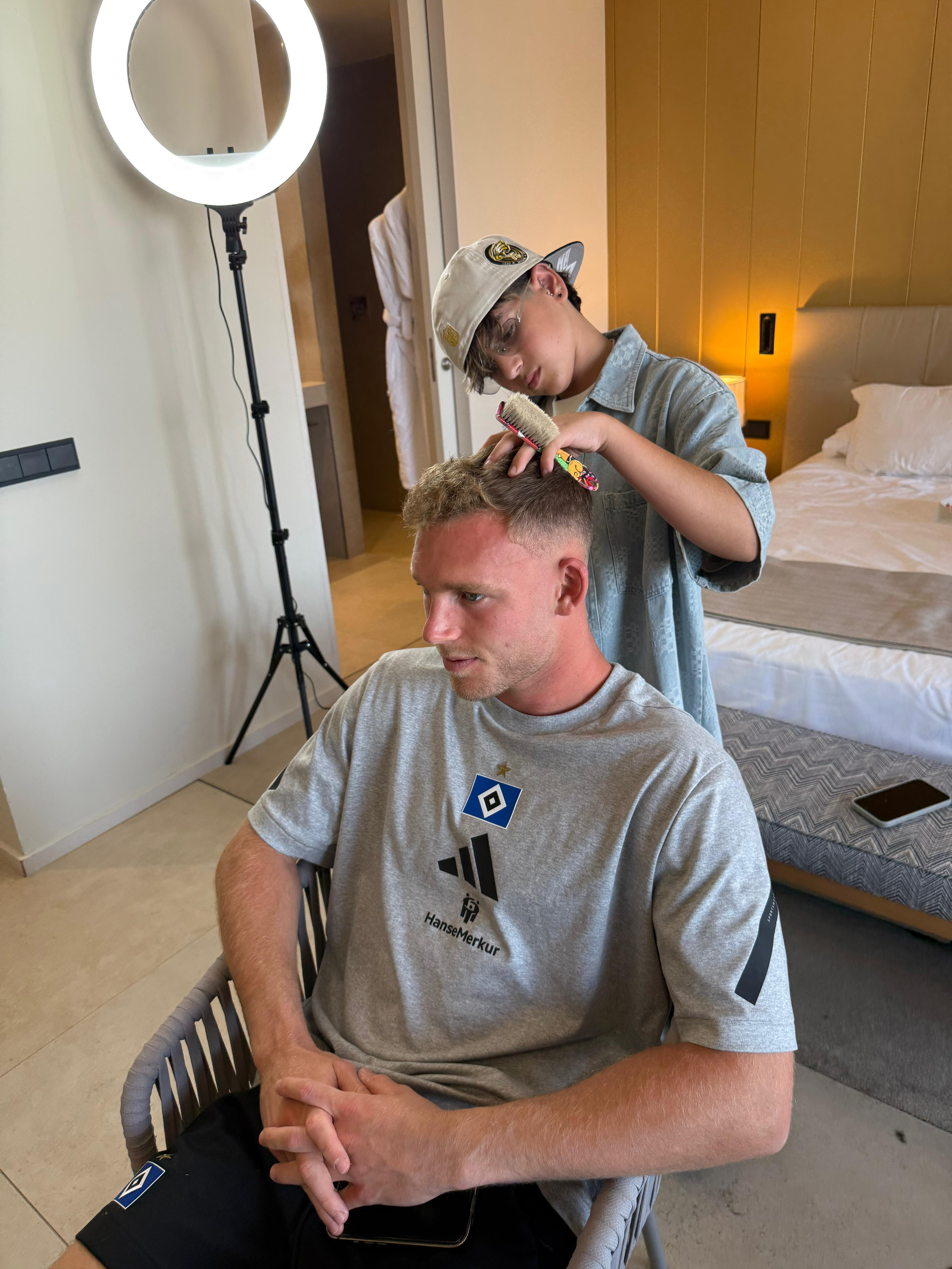 פרץ ושחקני המבורג טסו לפלמה דה מיורקה, שם הם יפגשו את קבוצת מיורקה הספרדית, מולה הם ישחקו הערב באצטדיון סון מוש. לעיר המתוירת הגיעו גם הספר המקצועי שניר אהרון ובנו ליאם בן ה-13, שהגיעו לספר את דניאל פרץ ויתר שחקני קבוצתו החדשה. השניים הוטסו במיוחד לפלמה דה מיורקה בעקבות דרישתם של כלל שחקני קבוצת המבורג אשר ביקשו להתחדש בתספורות לכבוד פתיחת העונה הקרבה.