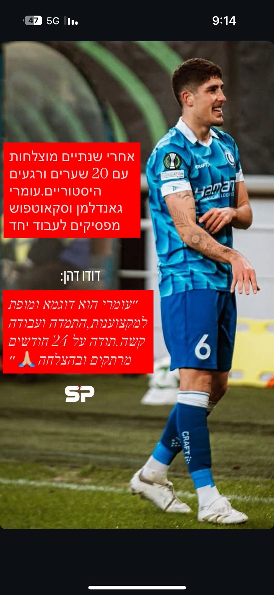 לאחר עבודה של שנתיים יחד, הכדורגלן עמרי גאנדלמן שמשחק בגנט, נפרד מסוכנו בשנתיים האחרונות, דודו דהן.