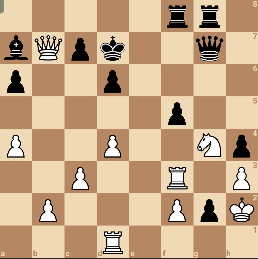 28. פה5+! הקרבת כלי יפה של סו שמובילה לזכייה כפויה