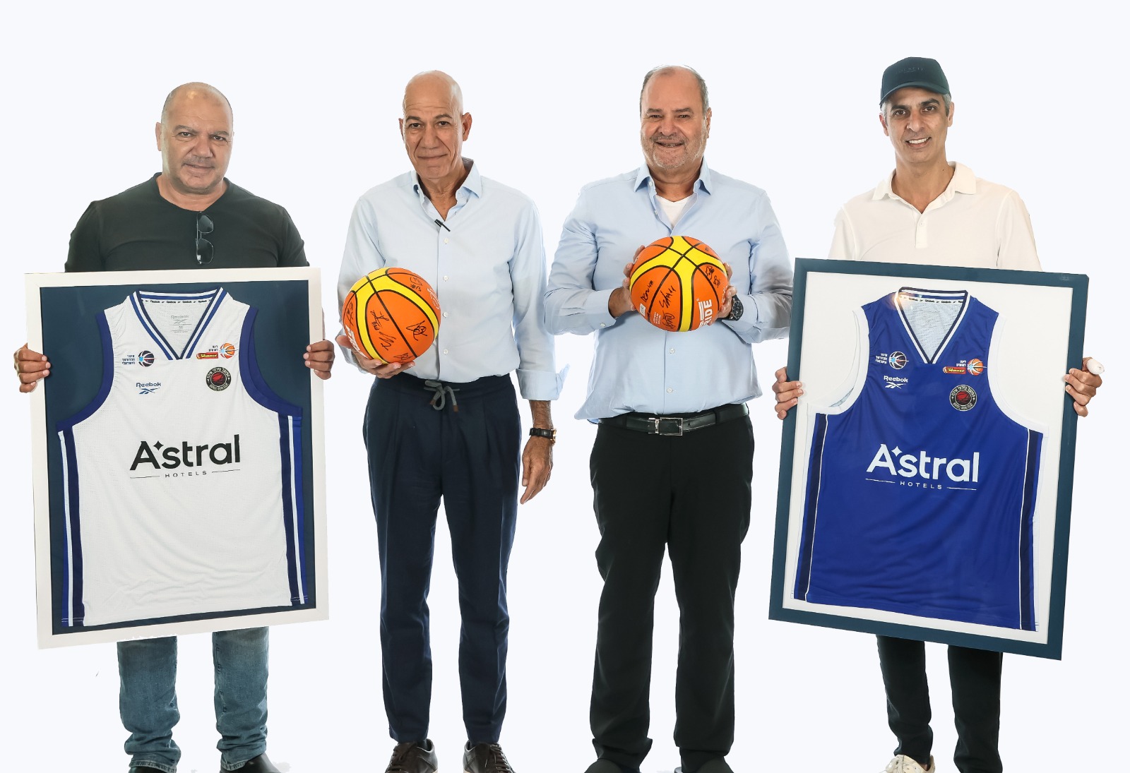 (מימין: טל פנחס- יו״ר הפועל אילת, בני זרח ואשר גבאי- בעלים רשת אסטרל, אמיר בוכריס- חבר הנהלת מועדון הפועל אילת קרדיט: לילך וייס)