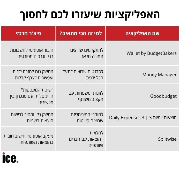 המשכורת נעלמת לכם בין האצבעות? הפכו את הסמארטפון לכלי שיעשה לכם סדר בכסף. קבלו 5 אפליקציות חינמיות ופשוטות שיעזרו לכם לקחת שליטה ולסיים את החודש בפלוס