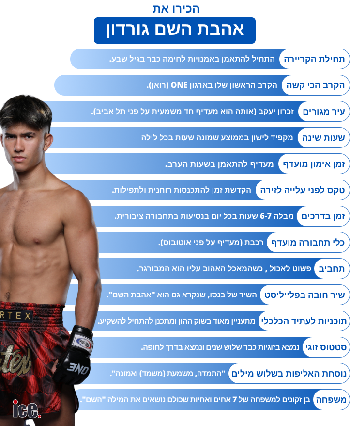 אבל מעבר לזירה ולשגרת האימונים הקשוחה, הנה 5 דברים שלא ידעתם על אהבת השם גורדון:
