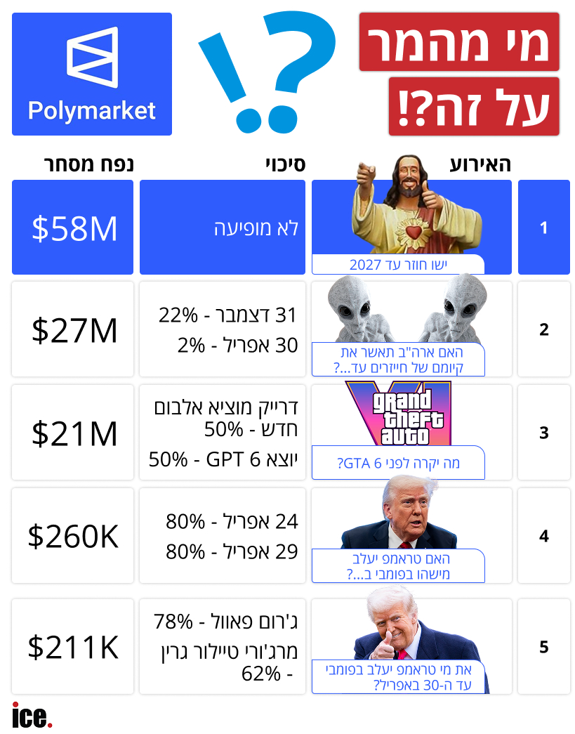 חייזרים, טראמפ וישו: ההימורים המופרכים שמגלגלים מיליונים בפולימרקט