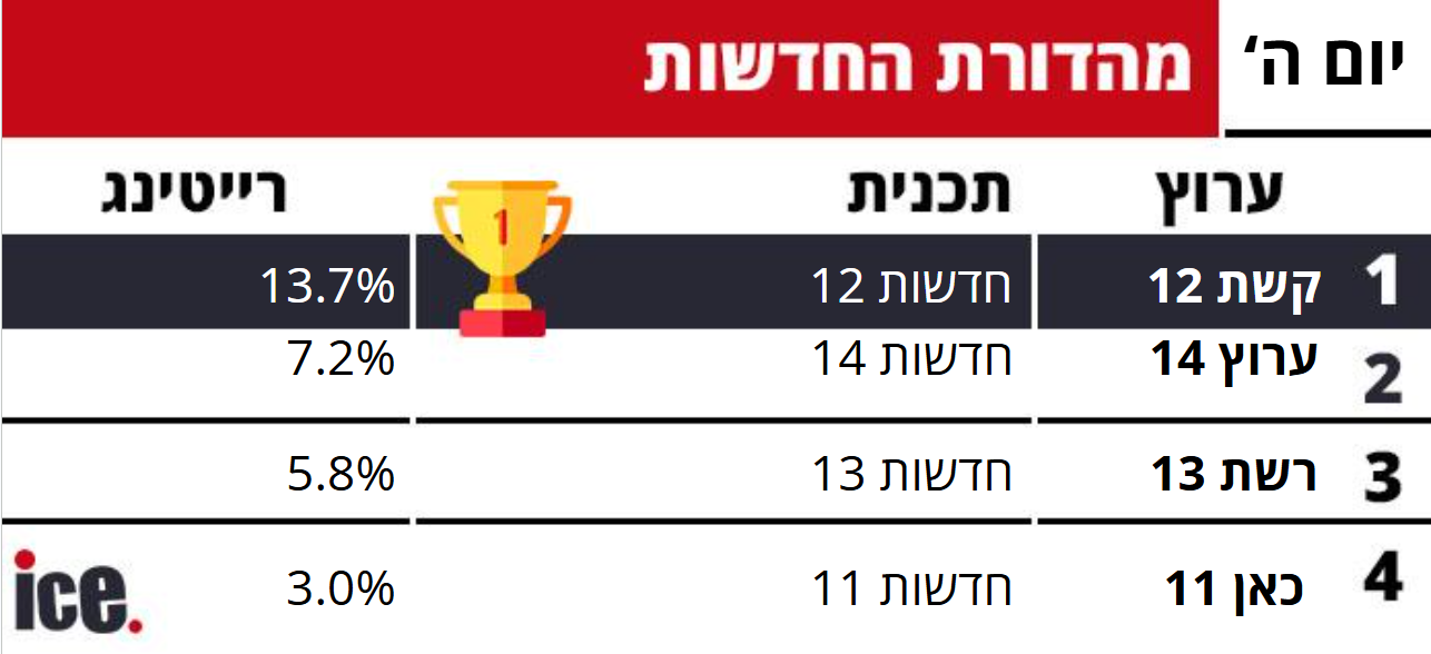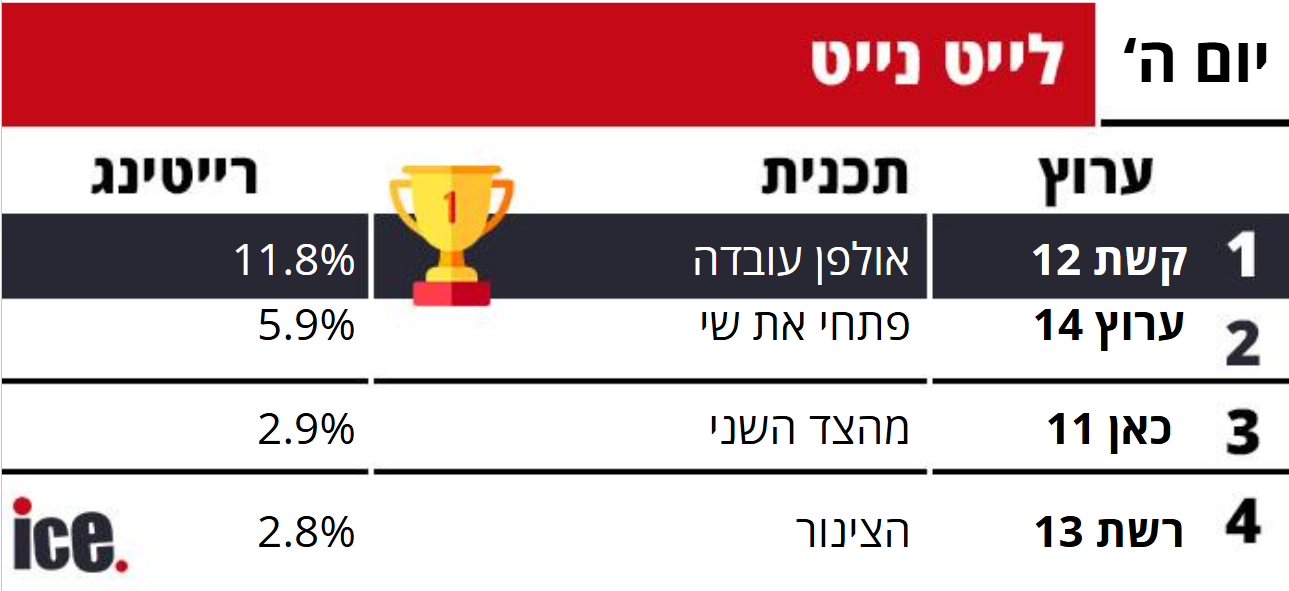 הפרק המיוחד של עובדה משך את מרבית הצופים, אך את מי העדפתם אחרי קשת? וגם: איפה כאן 11 הגיעו לתחתית הרשימה | נתוני רייטינג