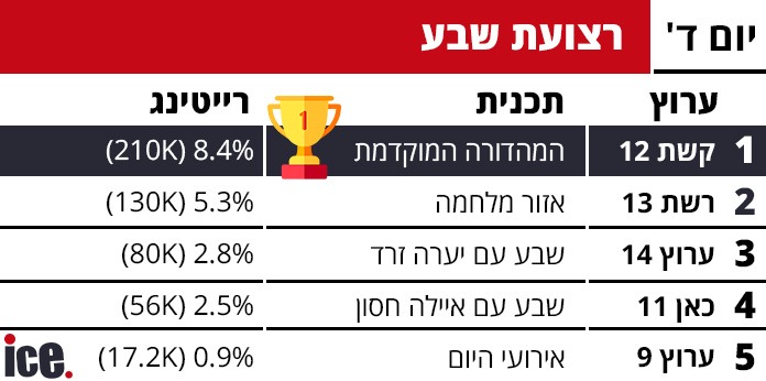 רייטינג: בן זיני קיבל בשורה רעה וכך גם קשת 12