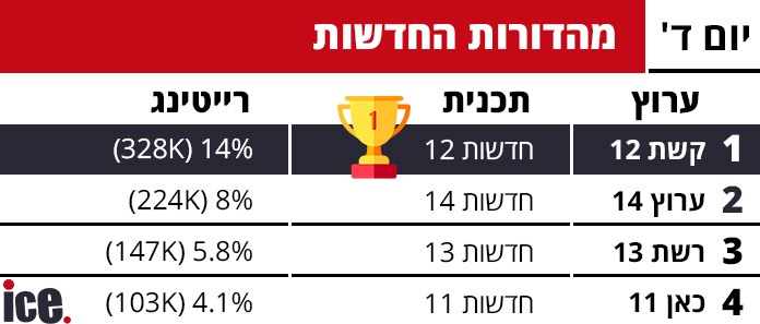 רייטינג: ערוץ 14 מצליח לנצח את רשת 13 בפריים טיים - מהפכה בדרך?