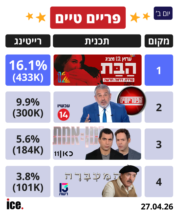 3.מעל כולם נמצא זירת נפילהמפרגן 04/2026/28הגב לתגובה זו0 0איפה ערוץ i24 לא נמדדסגור
