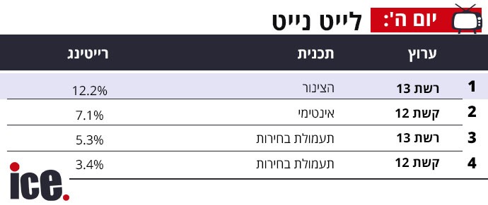 רייטינג: ניצחון לרשת 13 בפריים טיים ובלייט נייט