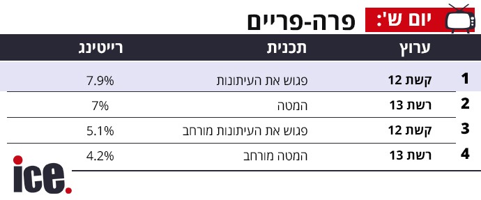 3.ומה לגבי נתוני הרייטינג של יום שישי? (ל"ת)אזרח הגון 10/2021/31הגב לתגובה זו2 0סגור