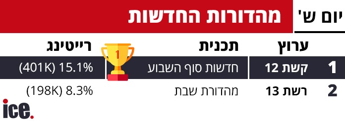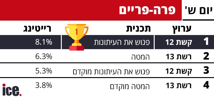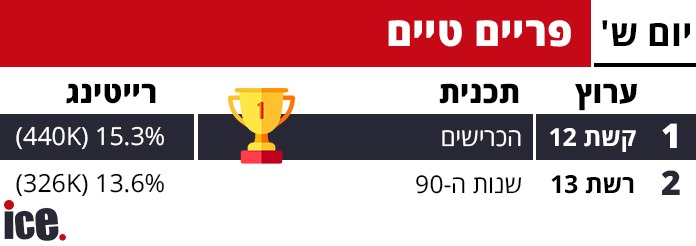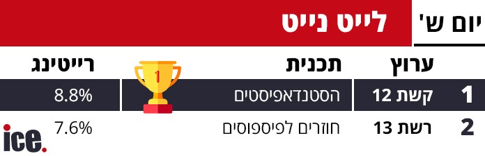 רייטינג: רשת 13 הפתיעה, האם הכרישים הצליחה להתמודד?
