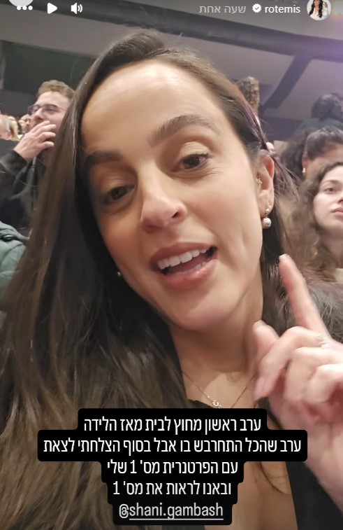 "ערב ראשון שלי מחוץ לבית מאז שילדתי. היה קשה מאוד, תכננתי הכל והכל נדפק והכל התחרבש אבל הצלחנו עם הפרטנרית הכי טובה בעולם", סיפרה רותם ישראל לעוקבים שלה באינסטגרם. בהמשך דבריה, שיתפה מגישת ערוץ 13 כי היא הגיעה להופעתו של אחד הזמרים המוערכים ביותר בישראל: "באנו למספר אחד. תכף תבינו גם למה הוא מספר אחד".