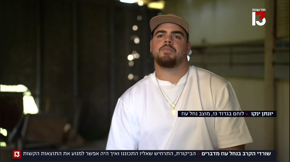 במהדורה המרכזית של חדשות 13 שידרו היום (ראשון) כתבה על קרב הגבורה בנחל עוז. במהלך הכתבה ראיינו את יונתן ינקו, לוחם בגדוד 13 של גולני, שלחם ב-7.10 בנחל עוז ואיבד חברים רבים תוך כדי לחימה. בתחילת הכתבה ציין: "בסוף זה כואב כי אני יודע על לפחות 19 חברים שלי מהפלוגה שנתנו את הנפש שלהם בצורה הכי הירואית ומדהימה שיכולה להיות, והקריבו את עצמם כדי שאני אוכל להיות פה".