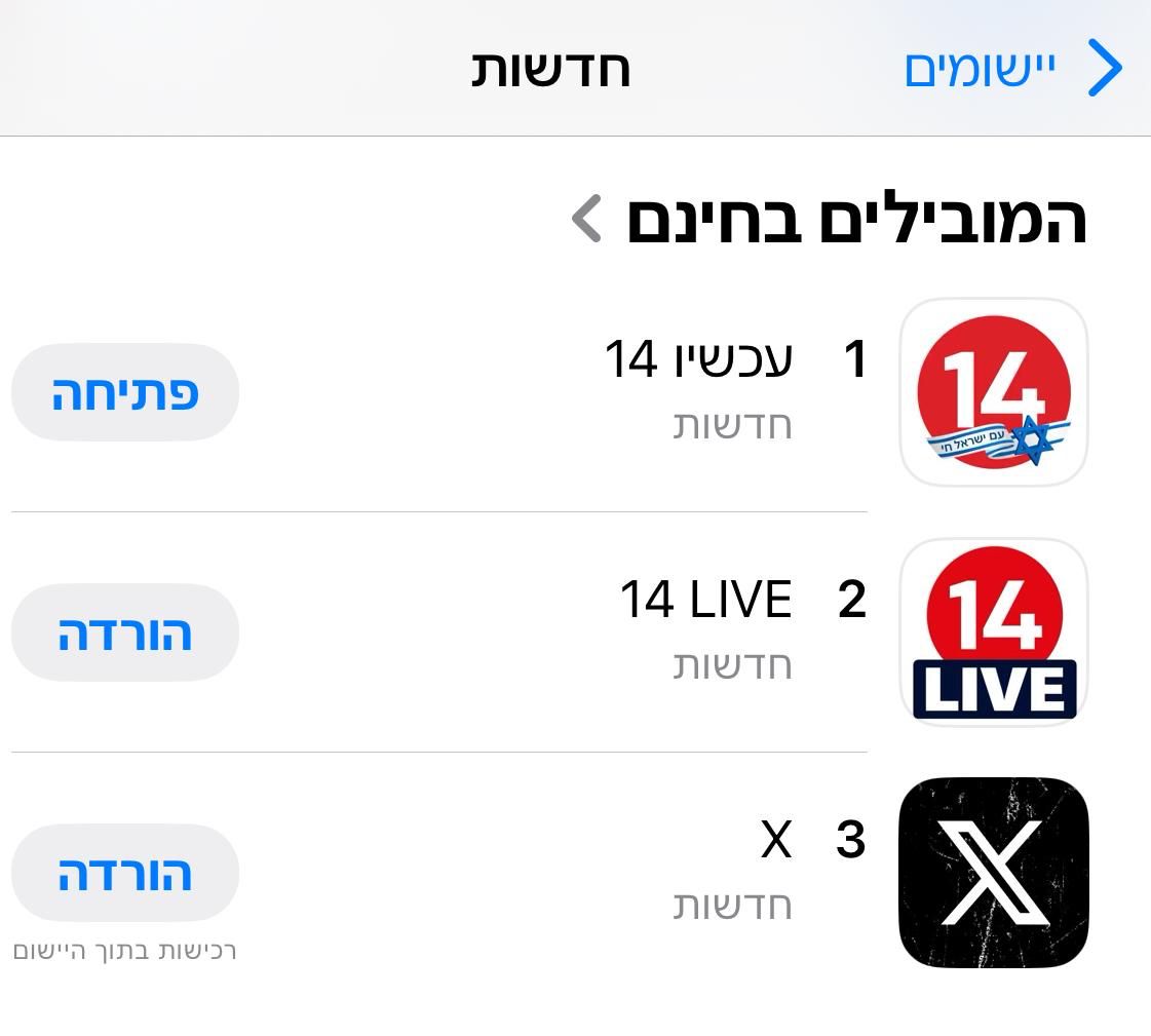 28.נו, ו...? כש-N12 עלתה הם גם עלו למקום הראשון.גל 04/2025/11הגב לתגובה זו2 3אנשים לא מורידים אפליקציות כל יום. אז כשעולה משהו חדש יש פיק.סגור