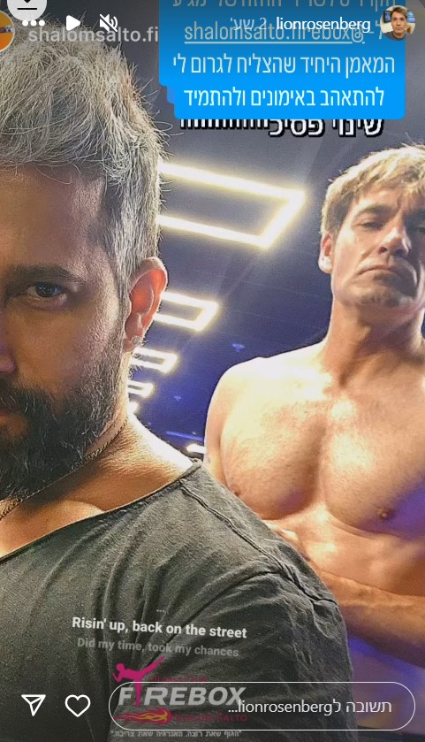 לצד התמונה, כתב רוזנברג: "הקרדיט לשרירי החזה שלי מגיע לשלום סלטו, המאמן היחיד שהצליח לגרום לי להתאהב באימונים ולהתמיד". מאמן הכושר מלווה את ליאון רוזנברג במטרתו להשיג גוף חטוב ובריא.