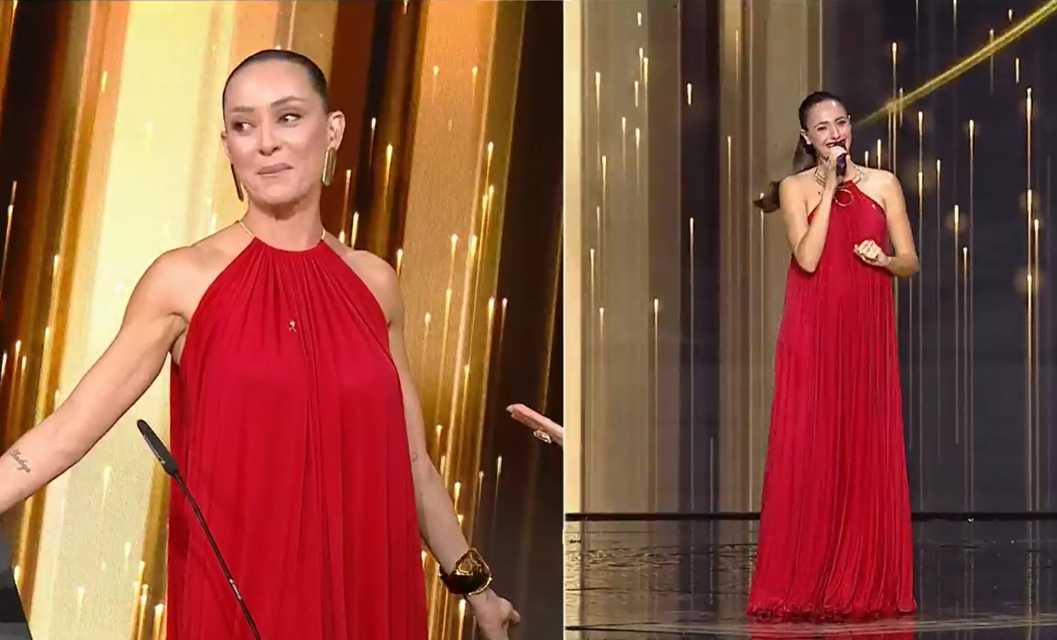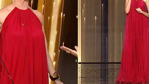 מי הסטייליסט או הסטייליסטית שפישלו? צופי "רוקדים עם כוכבים" התרשמו הלילה משמלת המקסי האדומה והנשפכת של מנחת התוכנית, לוסי איוב, שכללה צווארון קולר הבנוי משרשרת וסיכת חטופים סמלית על החזה.