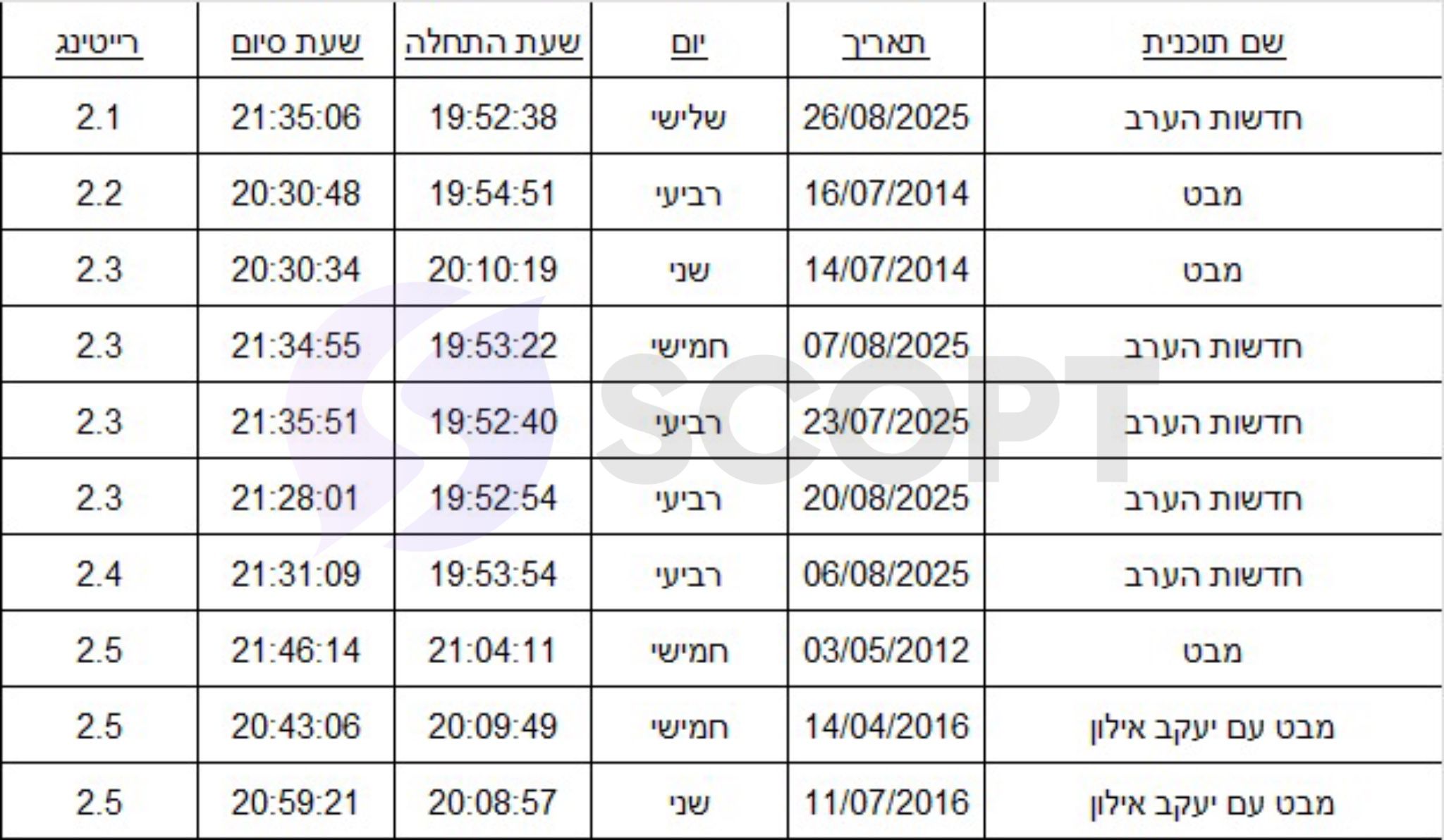 חמש מתוך עשר המהדורות החלשות אי פעם היו בשנה האחרונה ומתחילת מדידת הרייטינג. כשהשיא הגיע אמש (רביעי) עם מהדורה שהביאה רק 2.1% בלבד למהדורה שנמשכה שעה ו-40 דקות בסך הכל.