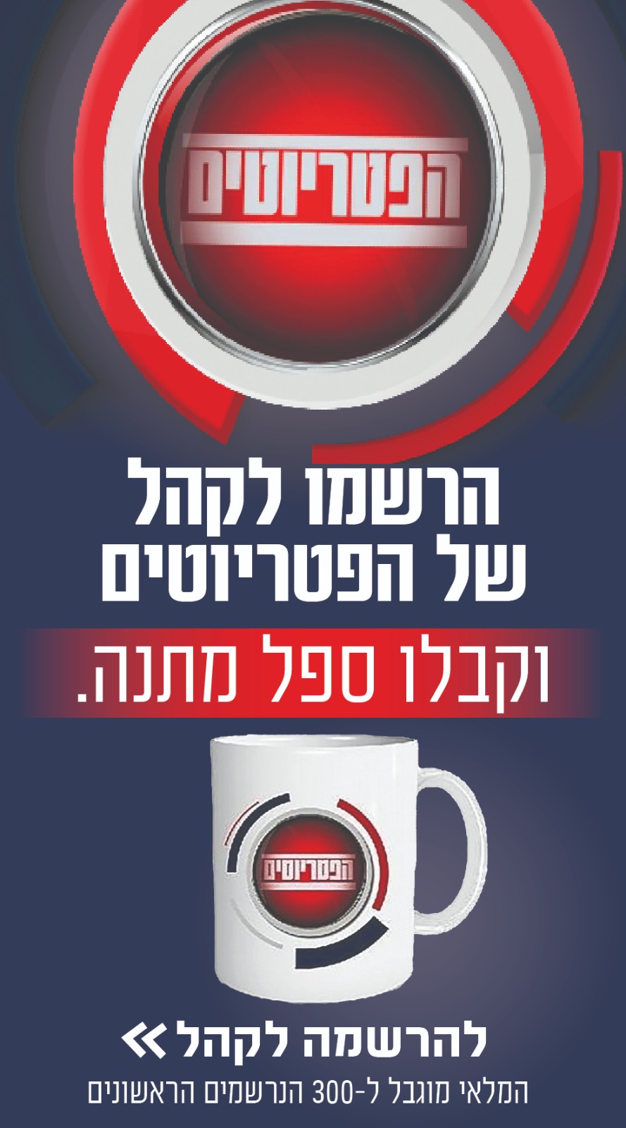 אחרי שבסוכה המיוחדת של ערוץ 14 ינון מגל חילק את השוקולד המיוחד שנועד לציין את המוות של הארכי טרוריסט, הערב יקבל הקהל שיגיע ספל מיוחד של 'הפטריוטים': ''בואו להתארח כקהל באולפן הפטריוטים - וקבלו ספל במתנה!''