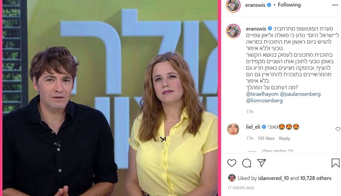 הסערה שיצר איש הבידור ערן סויסה בעקבות חשיפת התמונות שעוברות פוטושופ באינסטגרם הולכת ומתרחבת ואף מגיעה לאולפן קשת 12, כאשר בהמשך להעלאת המודעות לדימוי גוף, מהלך נדיר יקרה בתכנית של פאולה וליאון רוזנברג.