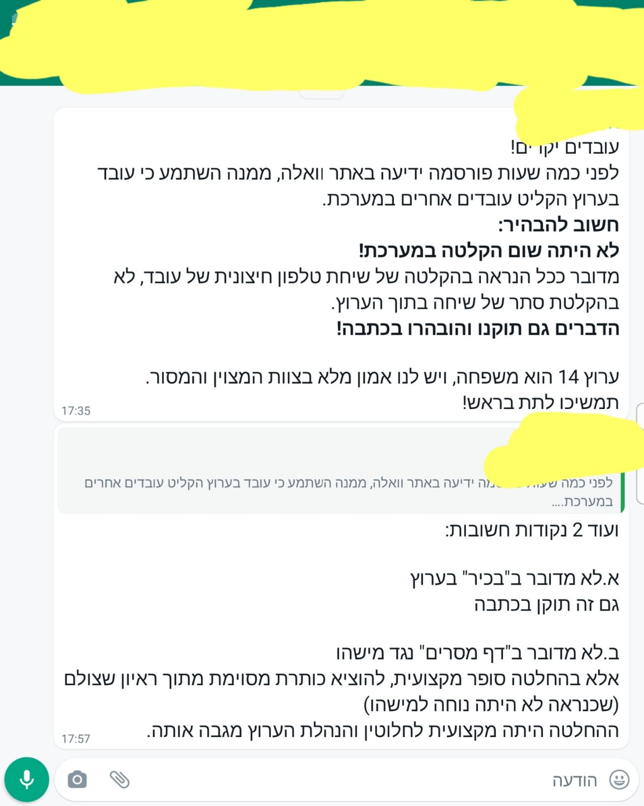 לאחר הבהרות שקיבל ורטהיים, נאלצו בוואלה לשנות את עיקרי הכתבה. ראשית, זה לא היה עובד בכיר כפי שנכתב בתחילה. בנוסף זו לא הייתה הקלטה מתוך המערכת אלא שיחת טלפון חיצונית של עובד.