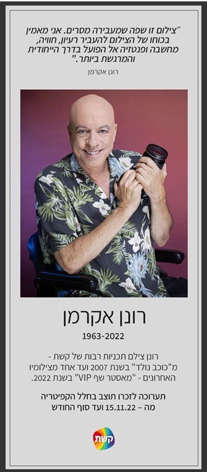 קשת במחווה מרגשת לצלם רונן אקרמן שהלך לעולמו